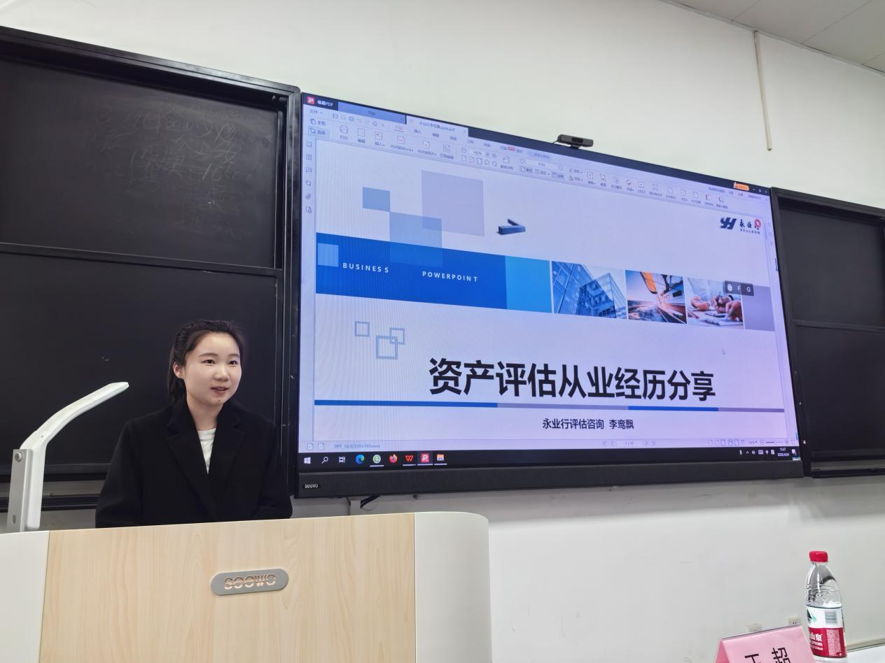 宣讲会上,李鸾飘作为行业优秀青年代表,结合自身从业经历,分享了资产评估行业的发展前景、考试经验及职业规划建议,鼓励学生积极报考资产评估师,投身咨询评估行业,实现自身价值。